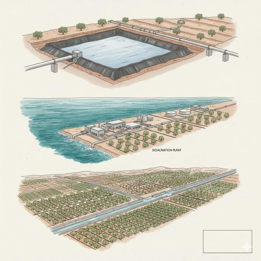 The population always growing along with technological advancements needed quicker higher impact answers, so we see the implementation of basins, water transfer canals and pipelines and desalination plants as the new hydrological infrastructure. Mining operations with increasing water demands and little care for the effluent they produced require huge amounts of fresh water to push the pollution downstream, whilst salinating the land. Use of deep bore wells and pumps now drive groundwater levels ever lower, meaning the price of extraction of the water is always increasing too, and a side effect nobody anticipated is that of the hydrological pressure from the sea’s salty water becoming higher than that of freshwater aquifers. This leads to land becoming salted by the sea as it pushed inland, making land infertile and groundwater un-drinkable, and no good for irrigation.